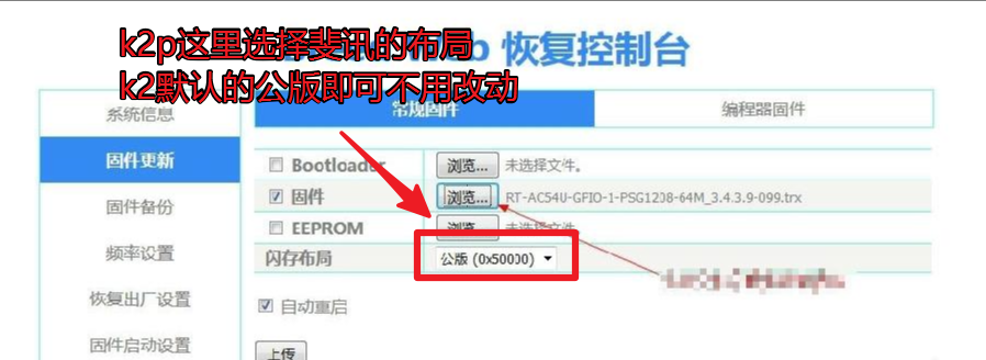 k2p在breed界面刷AP底包时闪存布局选择斐讯的,k2不用修改默认的公版布局即可。