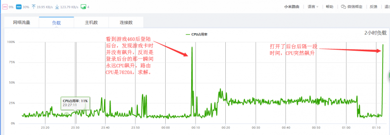 1、每次只要访问高恪的后台,CPU就会跳到94%左右,导致游戏卡顿。如果没玩游戏,也会导致流量瞬时降低很多,只要大家看看CPU占用率飙升的时候的流量分析就知道了。2、当已经打开了高恪后台后,持续观察。偶尔会突发的CPU占用率飙升,并且看对应的时间点附近的流量数据,会发现此时流量大概都是300KB或更低的流量值,所以并不是由于流量过大导致的CPU飙升。