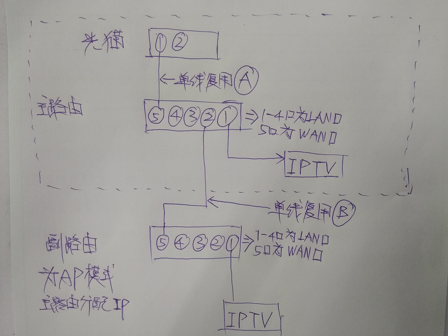 gknan 发表于 2019-10-17 13:35 楼主!你好!按照你的办法确实实现了单线复用! 现在想请教你,再接一台副路由高恪K2P怎样在实现单线复用! ...