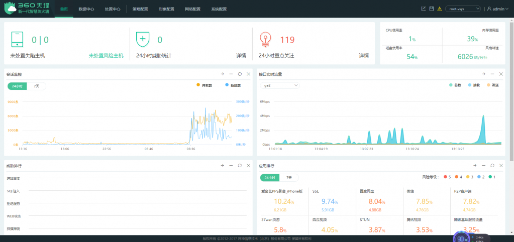 6、界面图标还是有点丑了,不过无伤大雅~企业级应用,图标方方正正的很简洁就挺好,没必要拟物化,参考360的防火墙,他们家的设备界面好看~看着感觉高级(如图)