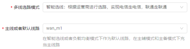 4、多线策略,不同运营商,选择【智能选线】,主移动300M