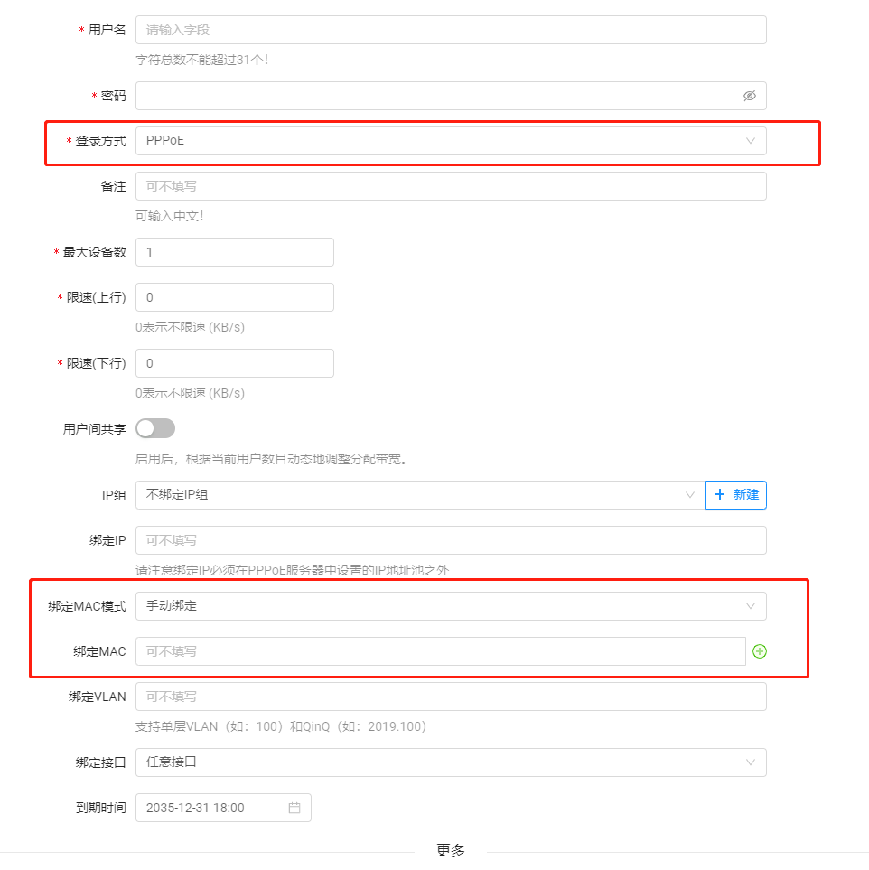 zly86 发表于 2021-12-15 17:39 Web认证+PPPoE难道不行?这个选项你看过吗? 都没仔细看功能在那,绑定MAC,个数也能设定 你设置的,只有 ...