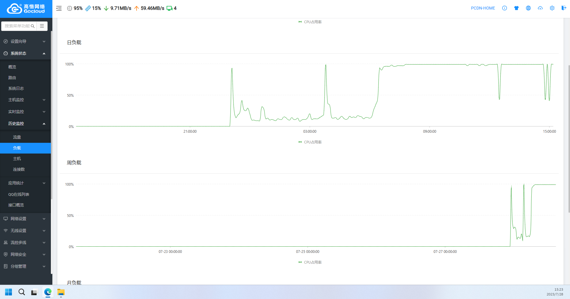 没开控流,居然还能刷抖音,打王者没感觉到卡,延迟稳定40多ms这样(不跑网心的话20多ms)。顺便问一下这个CPU占用,从40%多到90多%都不带过渡一下的吗?