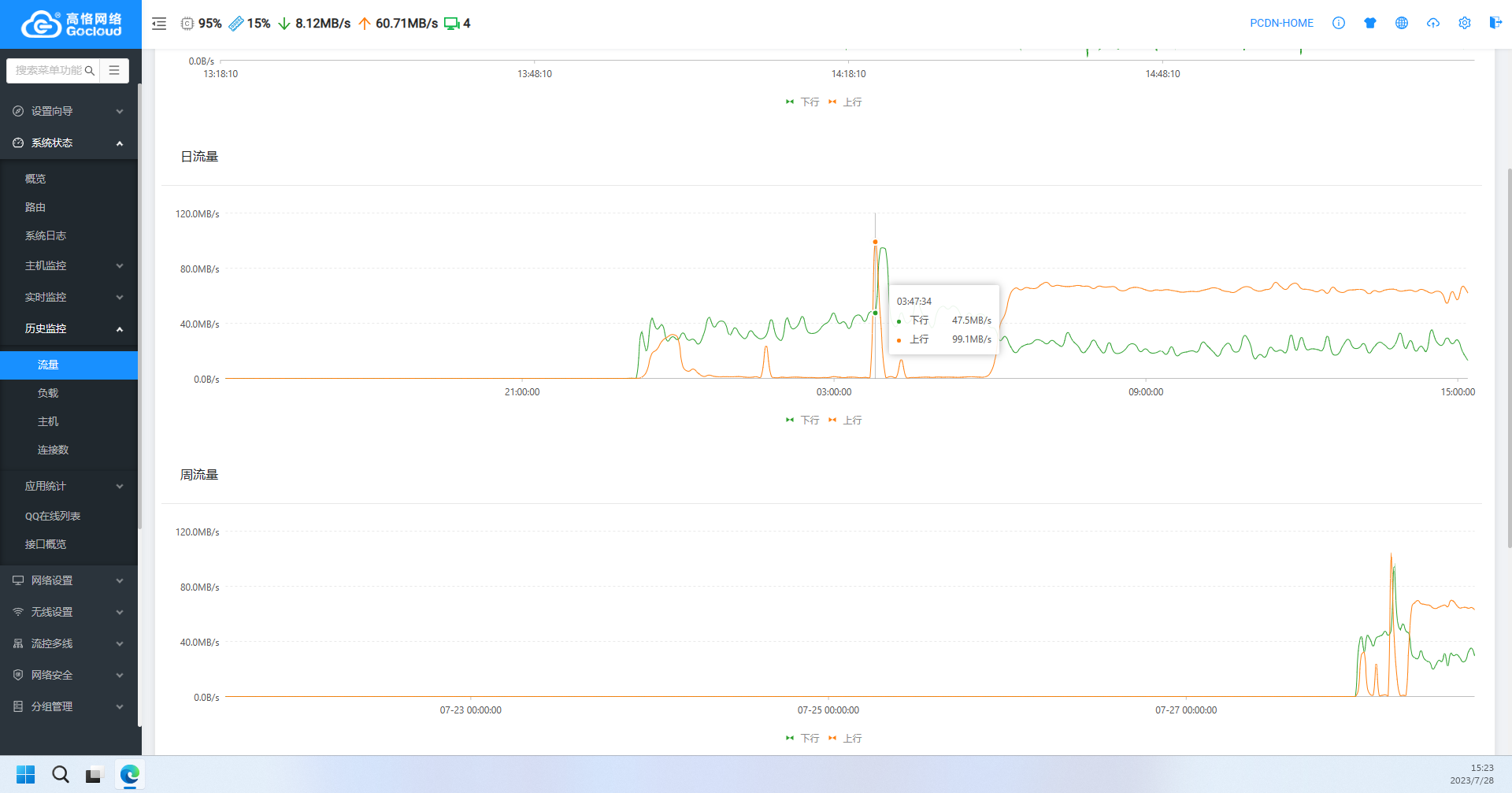上行带宽测速共96MB/s这样,x86网心云是能跑4g流量的配置
