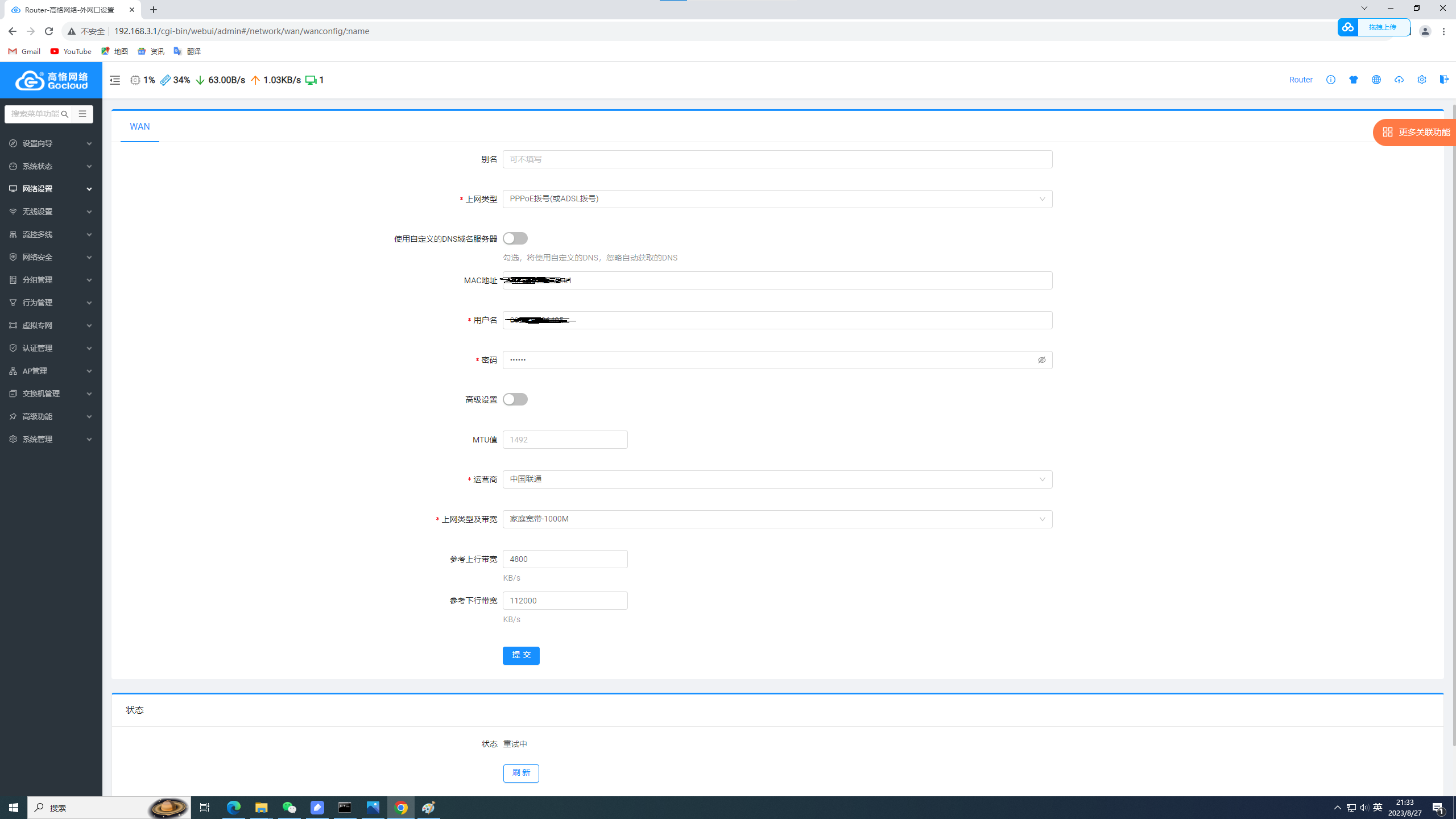 SixLoy 发表于 2023-8-27 22:59 解决了,我把正常拨号的固件mac地址克隆过去了